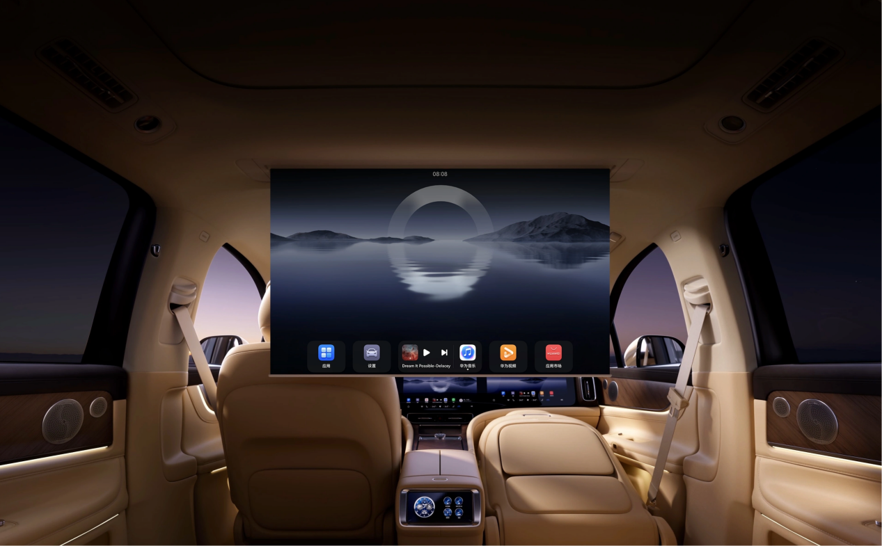 “移动空间,既是休息室,也是会议室。”HarmonyOS 4智能座舱以超越十屏的硬件布局,打造出兼具豪华与功能性的“移动智慧空间”。独特的多屏流转技术实现信息无缝衔接,32英寸升降式投影幕布可一键切换为移动会议室,完美支持商务演示、协同会议与影音娱乐,让路途时间转化为高价值时段。