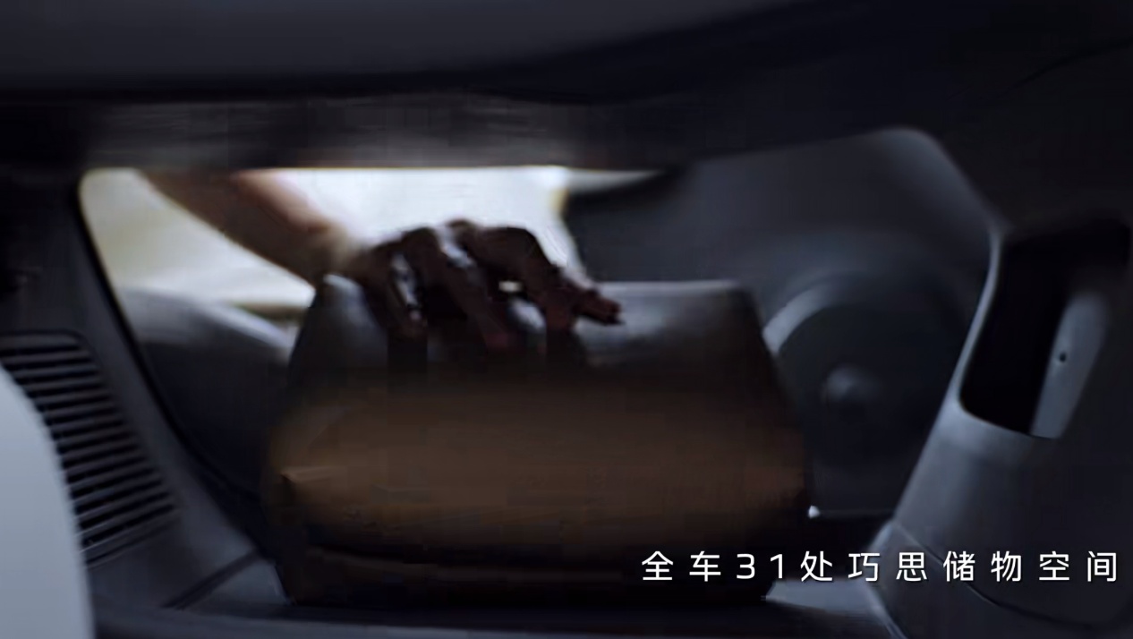 31处“百宝格”储物系统完全贴合家庭用车场景:前排扶手箱可放孩子的零食罐,车门储物格能固定老人的保温杯,后排座椅靠背挂钩可挂购物袋,甚至有专门存放手机、充电线、儿童玩具的小格子,实现“可藏、可固、可挂”的便捷体验。